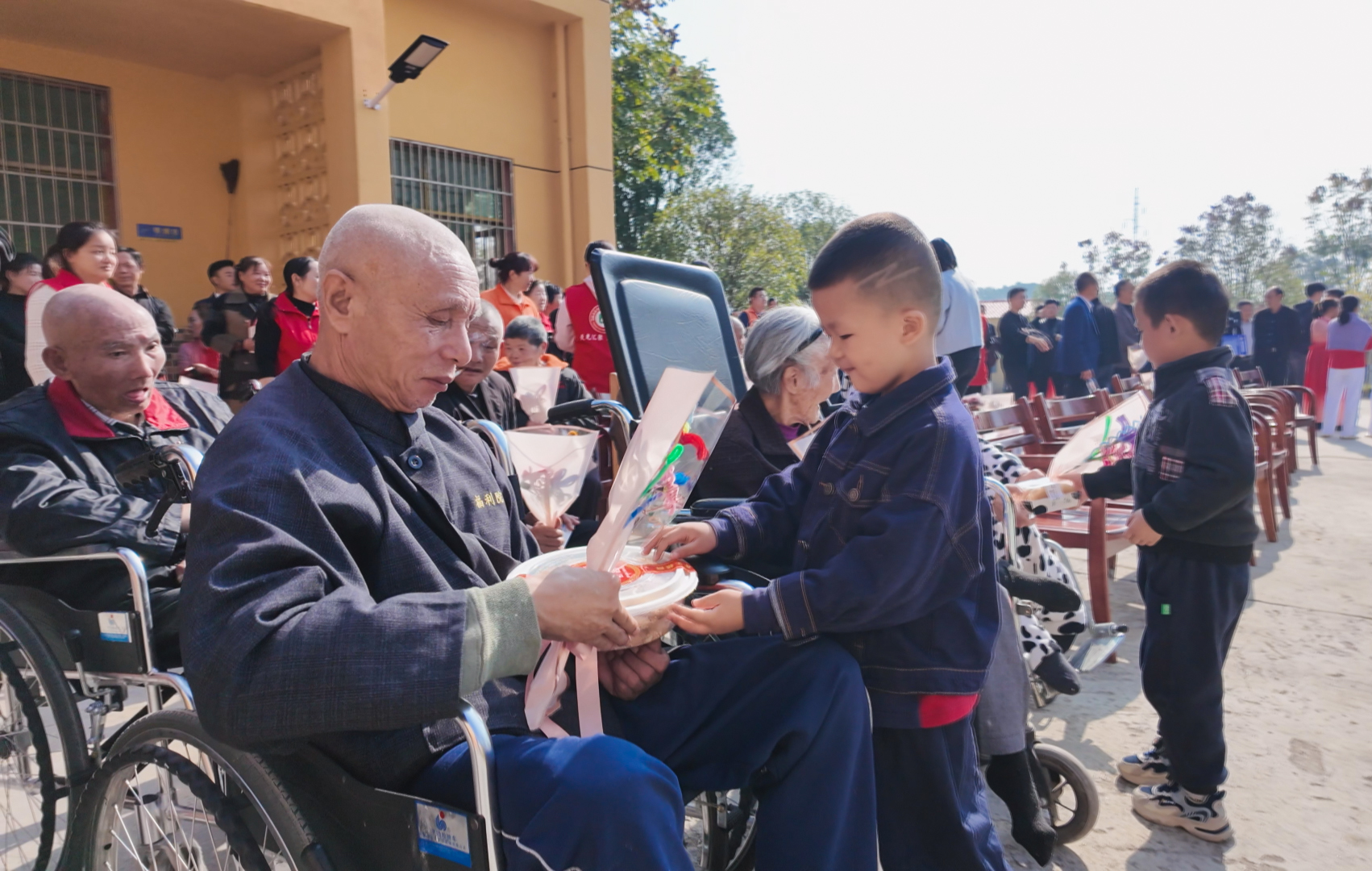 文艺表演环节温情洋溢。县老年大学的学员们精神矍铄,用悠扬的歌声和欢快的舞步赢得阵阵掌声。一群可爱的孩子登台献上精彩的节目,随后将亲手制作的手工花和精心准备的糕点送到每位老人手中。现场暖意融融,气氛温馨。