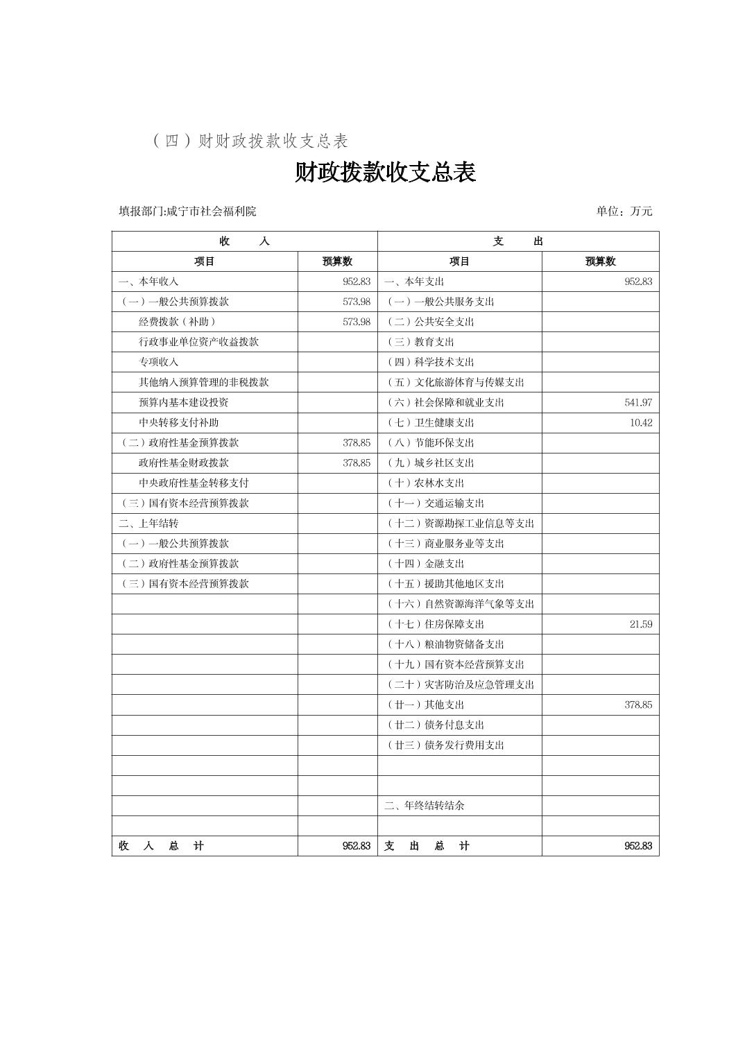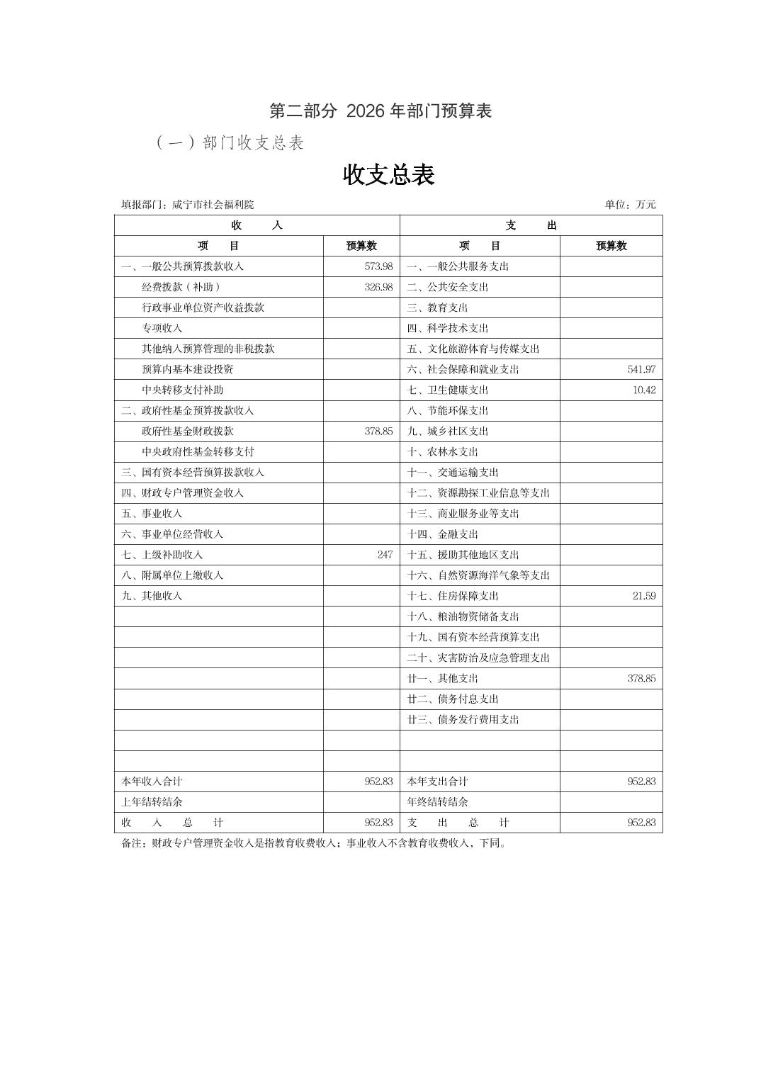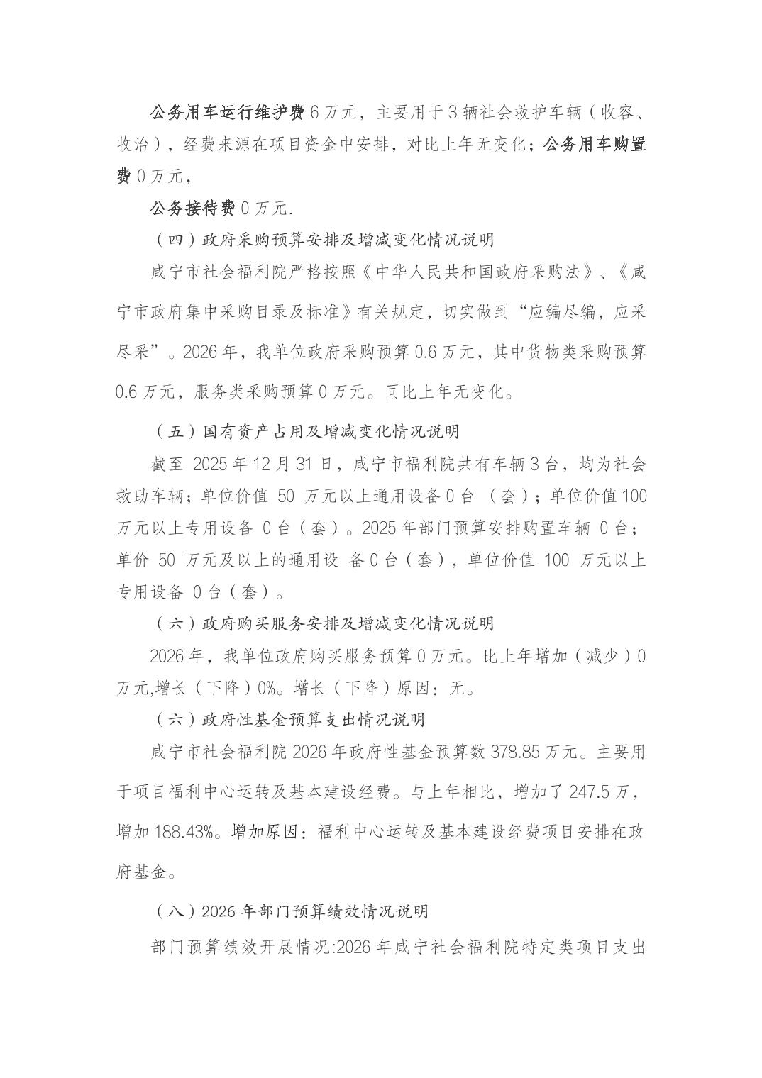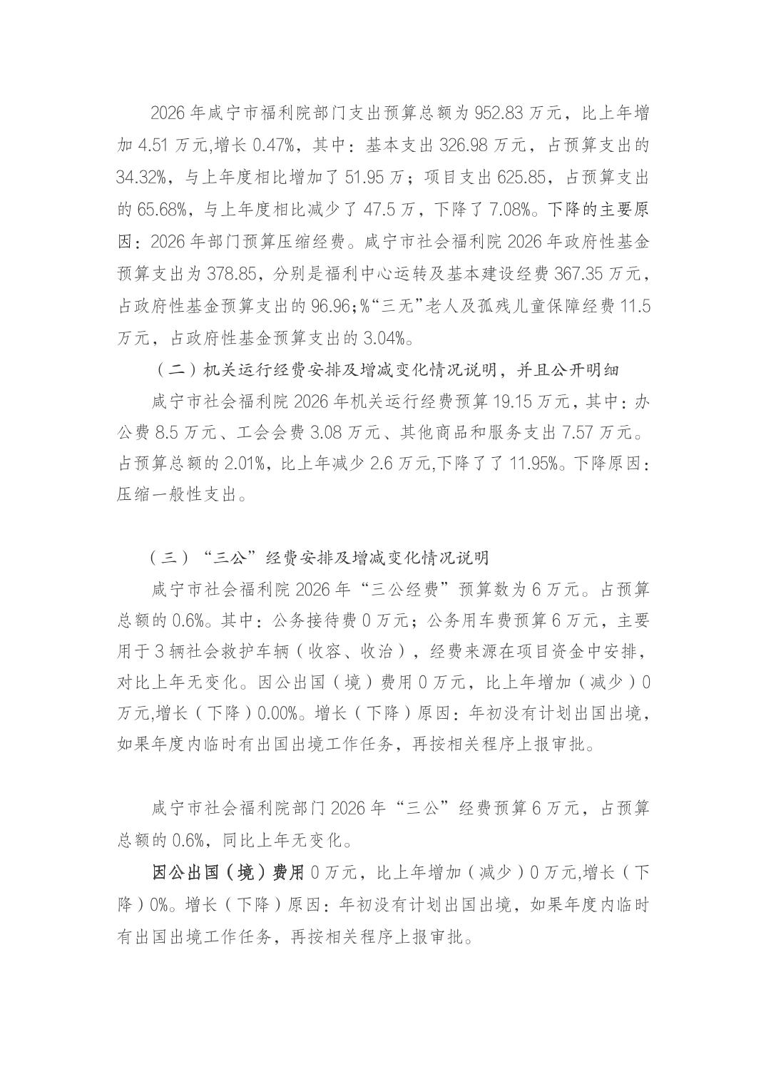 咸宁市社会福利院2026年部门预算公开