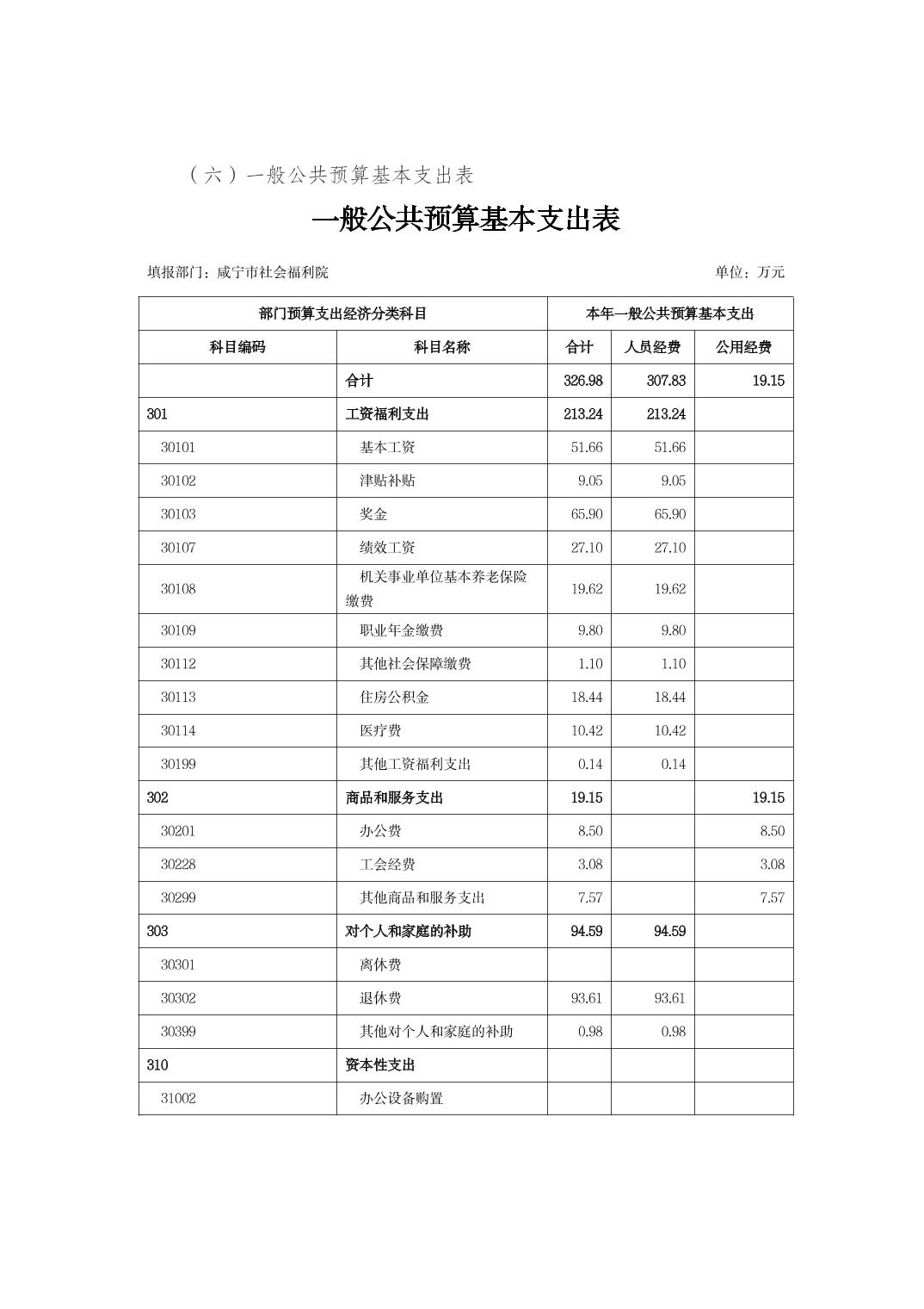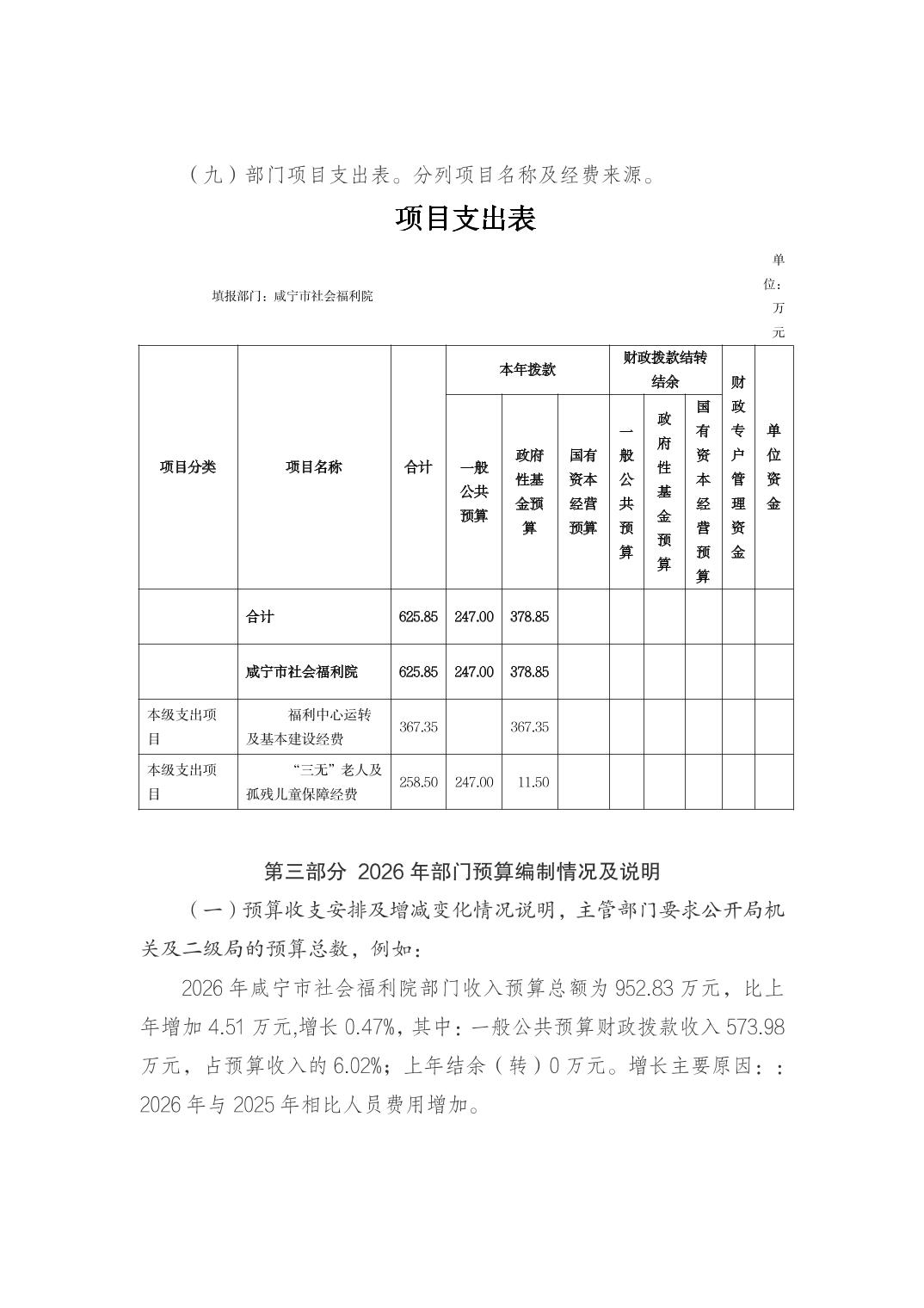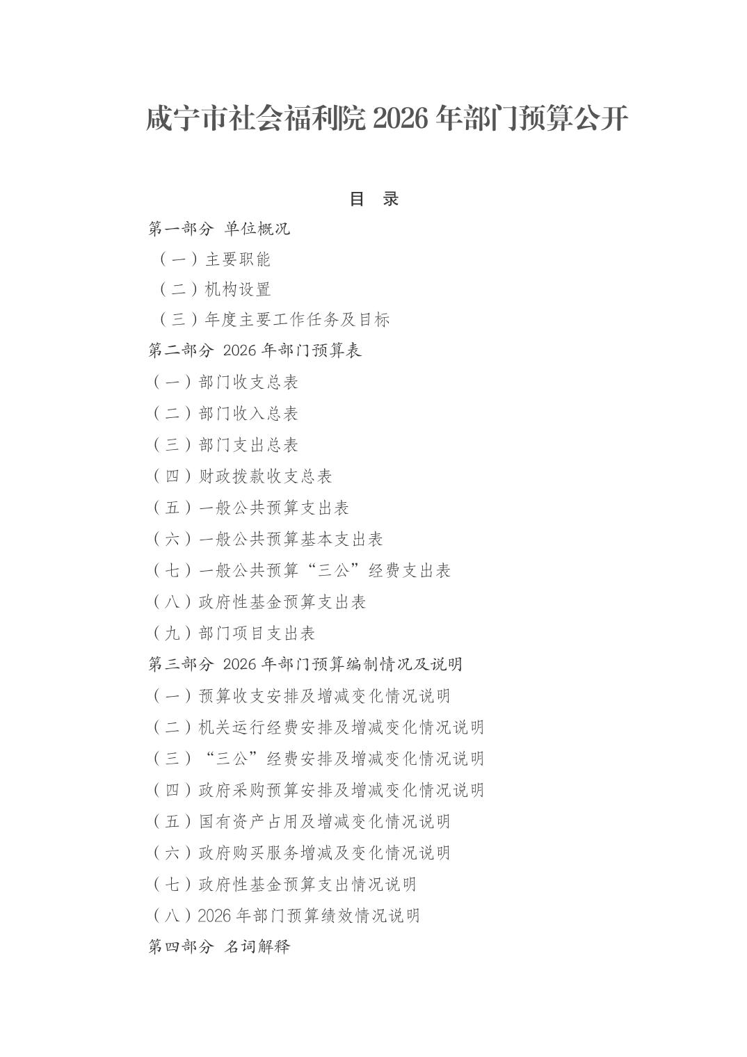 咸宁市社会福利院2026年部门预算公开